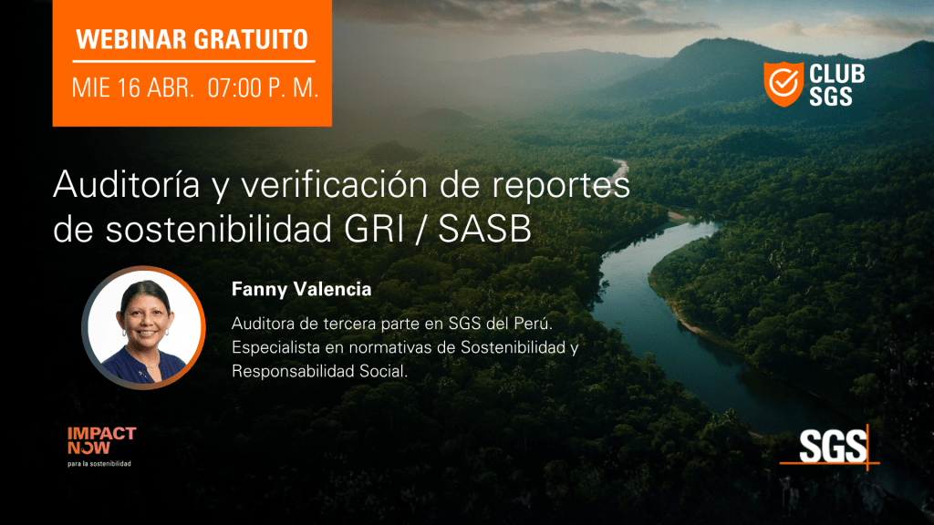 El pasado 16 de abril, el Club SGS llevó a cabo un webinar especializado sobre auditorías de reportes de sostenibilidad bajo los estándares GRI/SASB, con nuestra auditora de tercera parte, Fanny Valencia, quien explicó la importancia de reportar y asegurar la información bajo estos estándares.